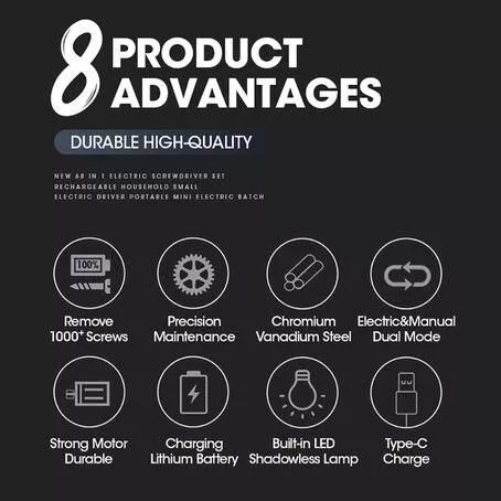 Introducing our revolutionary 68-in-1 Precision Electric Screwdriver Set, meticulously designed for those who crave efficiency, accuracy, and versatility in their repair tasks. Whether you’re a professional technician or a DIY enthusiast, this compact yet powerful screwdriver set is tailored to meet all your repair needs for mobile phones, electronics, and more. Discover the ultimate tool that combines convenience, durability, and precision in one sleek package.