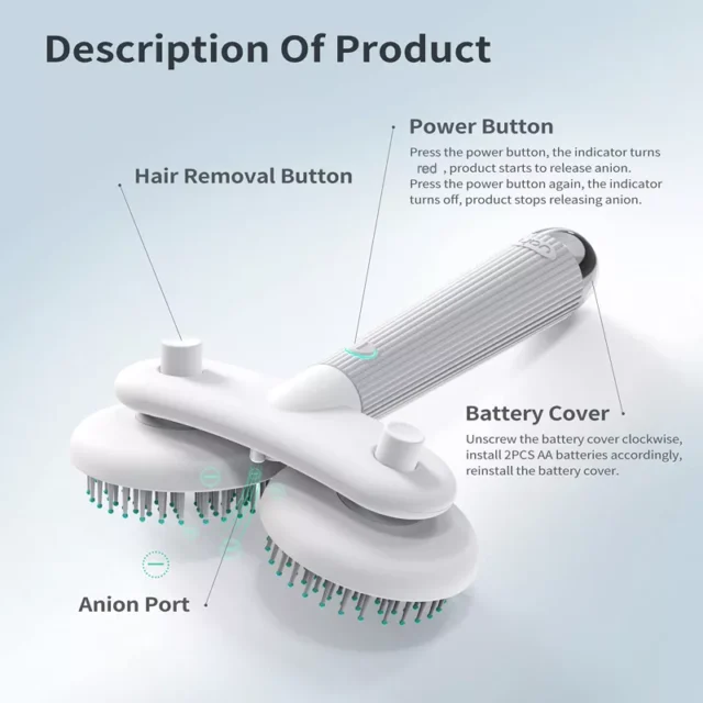 Transform your pet grooming routine with the Dual Head Electric Pet Brush, designed to make grooming a breeze. This innovative brush combines the power of negative ions with a unique dual head design, ensuring your pet’s coat is always smooth, shiny, and free of loose hairs, mats, and tangles. Say goodbye to grooming struggles and hello to a happier, healthier pet with every brush stroke.