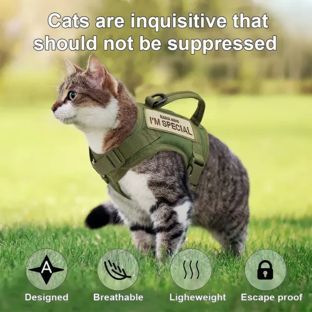 Embark on thrilling escapades with your feline friend secured in our Nylon Cat Harness Vest. Crafted for both cats and small dogs, this harness is a must-have for pet owners who crave outdoor adventures with their furry companions. Whether it’s a leisurely stroll through the park or intense tactical training sessions, our harness ensures comfort, safety, and style for your pet.
