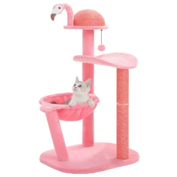 Charming Pink Flamingo Multi-Level Cat Tree with Hammock & Scratching Posts
