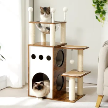 Solid Wood Cat Tree with Scratcher, Nest, and Multifunctional Design